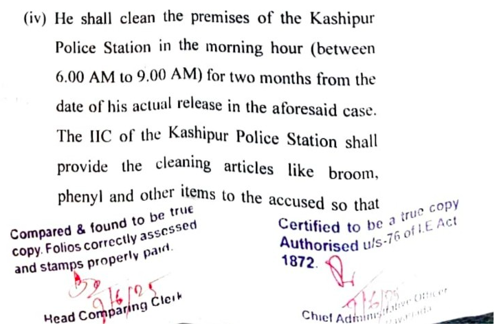 कुमेश्वर नायक को 28 मई 2025 को ओडिशा हाईकोर्ट से ज़मानत मिली, लेकिन इसके साथ एक विवादित शर्त भी रखी गई कि उन्हें हर दिन सुबह 6 बजे से 9 बजे तक काशीपुर पुलिस स्टेशन की सफाई करनी होगी. उन्हें करीब दो महीने तक झाड़ू, फिनाइल और सफाई के सामान से पुलिस स्टेशन साफ करना पड़ा. कुमेश्वर ने बताया कि जेल से निकलने के बाद यह उनके लिए राहत का समय होना चाहिए था, लेकिन यह शर्त उन्हें अपमानित करने के लिए लगाई गई थी. उन्होंने कहा कि पुलिस के कुछ लोग भी इस शर्त से असहज थे और शुरू में उन्हें सिर्फ साइन करके जाने को कहते थे, लेकिन बाद में जब 45 साल के दलित किसान और कार्यकर्ता हिरामल नायक को भी इसी शर्त पर रिहा किया गया था.