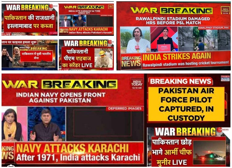 पाकिस्तानी सेना प्रमुख के इस्तीफे की अफवाह भी मातृभूमि, डीएनए, वनइंडिया, ग्रेट आंध्रा ने आसिम मुनीर के इस्तीफे की झूठी खबर छापी. जबकि किसी विश्वसनीय स्रोत से इसकी पुष्टि नहीं हुई. इसके अलावा फर्स्टपोस्ट, एनडीटीवी, फ्री प्रेस जर्नल, द स्टेट्समैन ने पाकिस्तानी सैन्य प्रवक्ता का डीपफेक वीडियो दिखाया. इसमें वे दो लड़ाकू विमान खोने की बात स्वीकार कर रहे थे.
