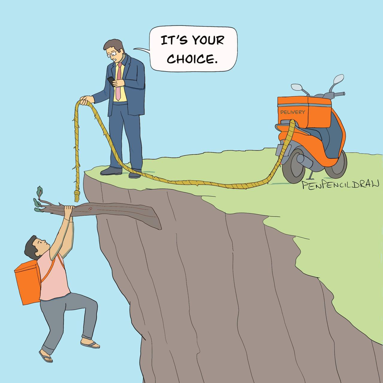 किसी उपभोक्ता को थोड़ी “देरी” से मिलने वाली डिलीवरी से उसकी संतुष्टि में होने वाली मामूली कमी कंपनी के मुनाफे के लिए उतनी महत्वपूर्ण नहीं हो सकती, जितनी कि यह जल्दबाजी श्रमिकों के लिए गंभीर खतरे पैदा करती है. दोनों पक्षों (कंपनियों और श्रमिकों) द्वारा बातचीत के जरिए एक न्यायसंगत और उचित समाधान निकालने की आवश्यकता है.