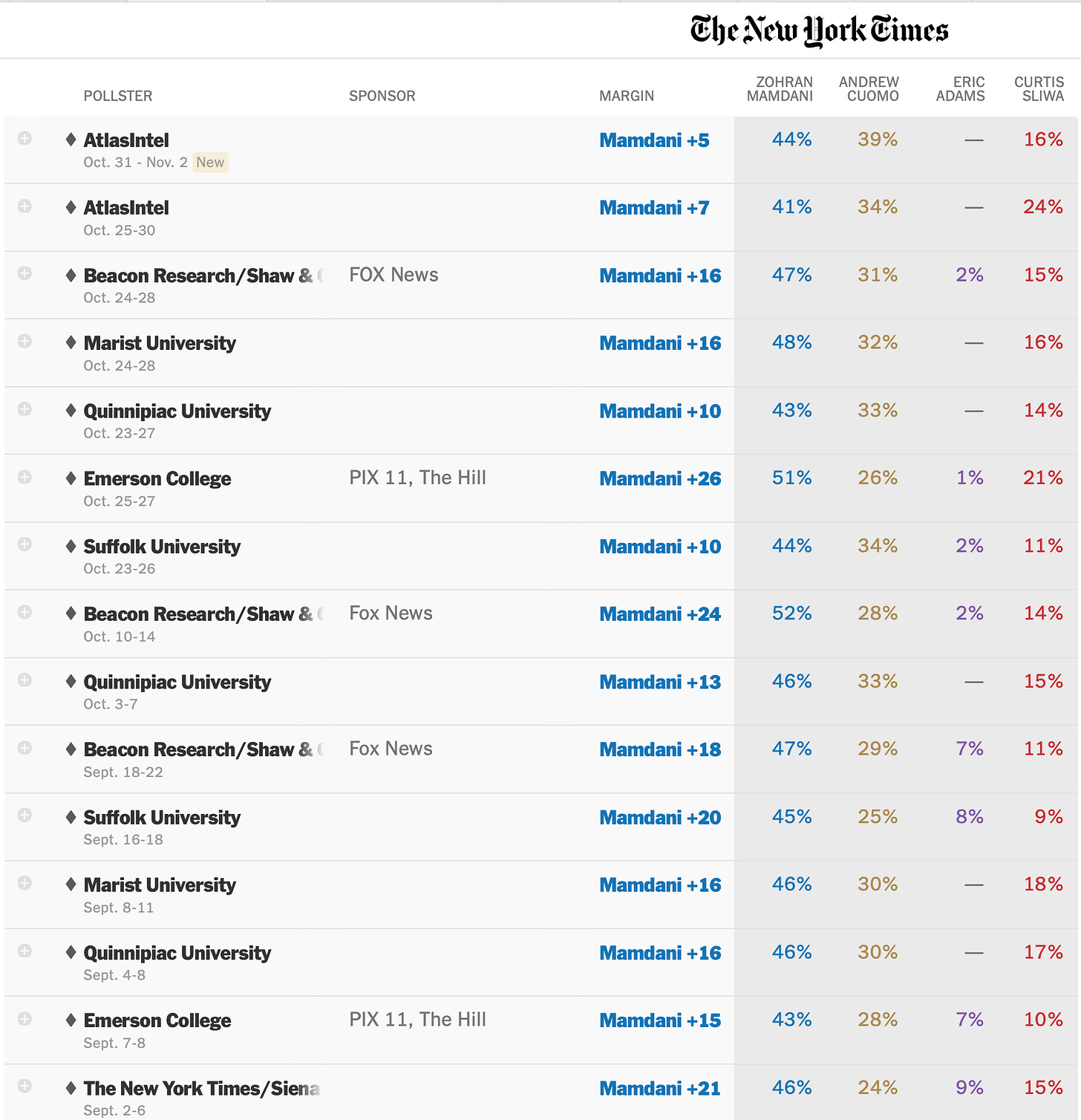 हालांकि जैसा कि पोल्स बता रहे हैं, ममदानी की बढ़त लगातार बनी रही.
