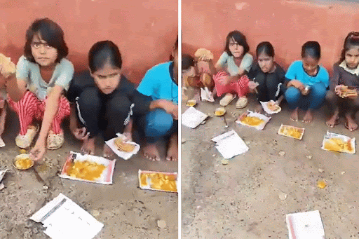 स्कूली बच्चों को कागज़ के टुकड़ों पर परोसा मिड-डे मील, राहुल गांधी ने भाजपा पर निशाना साधा