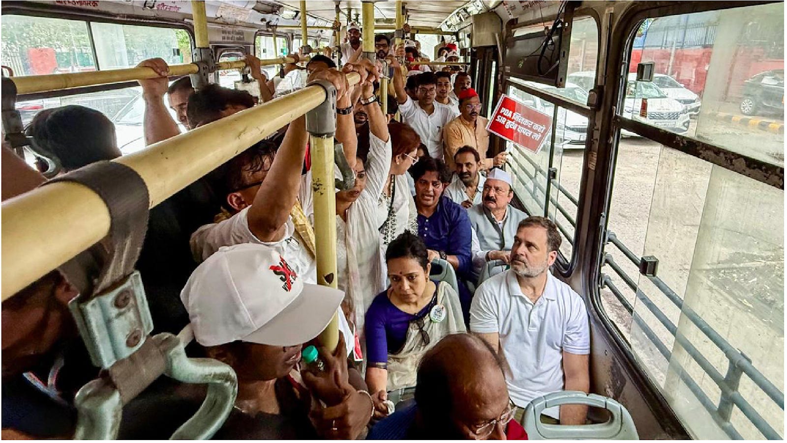 गिरफ्तारी के दौरान बस में बैठते हुए राहुल गांधी ने कहा, "यह लड़ाई राजनीतिक नहीं है, बल्कि संविधान को बचाने के लिए है. यह लड़ाई ‘वन मैन, वन वोट’ की है और हम एक साफ-सुथरी, पवित्र मतदाता सूची चाहते हैं. हमने जो सबूत दिए हैं, वो चुनाव आयोग का ही डेटा है.वे कुछ नहीं कह सकते, क्योंकि सच पूरे देश के सामने है."प्रदर्शन के दौरान टीएमसी की महुआ मोइत्रा और मिताली बाग बेहोश हो गईं, जिन्हें राहुल गांधी ने संभाला. मल्लिकार्जुन खड़गे ने कहा, "‘वोट चोरी’ और एसआईआर के खिलाफ यह प्रदर्शन लोगों के मताधिकार की रक्षा करने और लोकतंत्र को बचाने का संघर्ष है. इंडिया ब्लॉक इस बीजेपी की साजिश को उजागर करेगा.बीजेपी की कायर तानाशाही नहीं चलेगी."कांग्रेस के महासचिव जयराम रमेश ने कहा, "चुनाव आयोग चुनाव आयोग है, यह 'चुराओ आयोग' नहीं हो सकता."