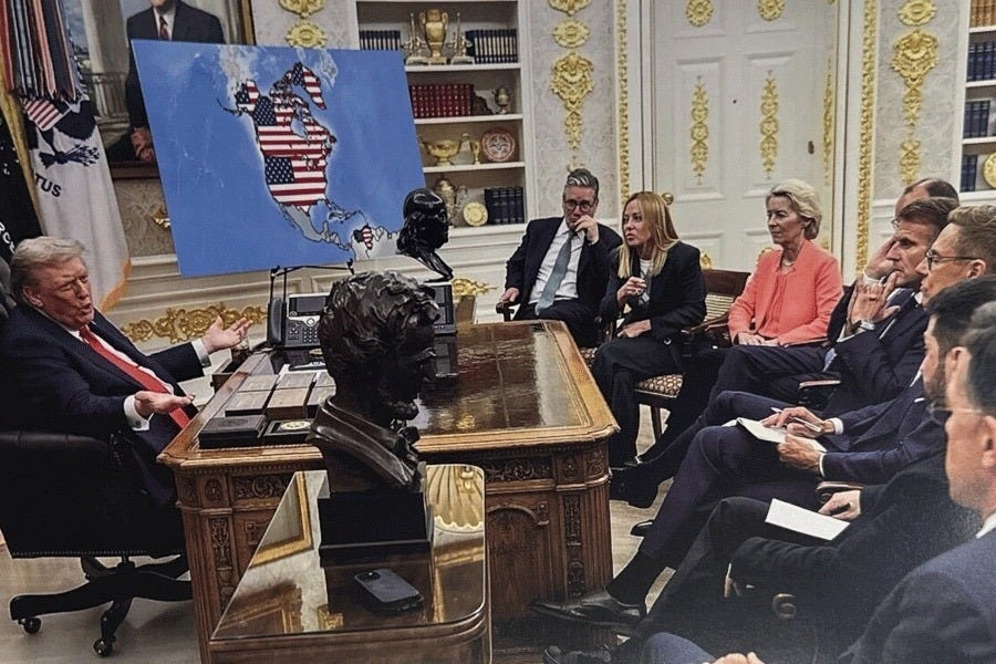 ट्रम्प का नया नक्शा: ग्रीनलैंड और कनाडा को अमेरिकी क्षेत्र बताया, यूरोप से व्यापार युद्ध के आसार.