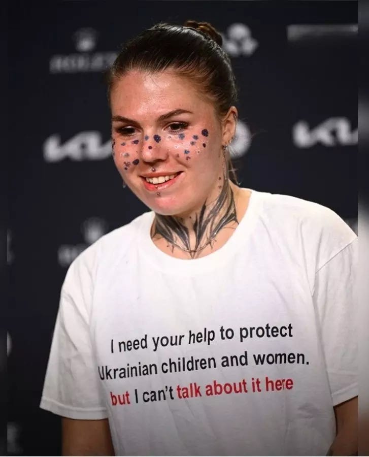 यूक्रेन की टेनिस खिलाड़ी ने एक टी-शर्ट के जरिए दुनिया से अपनी बात कह दी