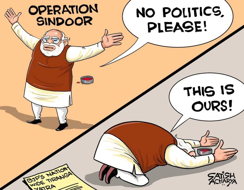 एक महीने से ज्यादा समय बीत जाने के बाद भी पहलगाम के चार आतंकवादियों का कोई सुराग भले ही नरेन्द्र मोदी की सरकार नहीं दे पाई हो, पर उसने उसके बाद किये ऑपरेशन सिंदूर पर सियासत जरूर शुरू कर दी है. घर-घर मोदी की शक्ल में अब घर-घर सिंदूर भेजने की तैयारी है. भारतीय जनता पार्टी “ऑपरेशन सिंदूर” को राजनीतिक रूप देने में लगी है. इसी रणनीति के तहत वह मोदी सरकार की 11वीं वर्षगांठ के अवसर पर देश के हर घर में “सिंदूर” भेजने की योजना बना रही है. यह कार्यक्रम 9 जून को शुरू किया जाएगा. पिछली बार इसी तारीख को मोदी ने प्रधानमंत्री पद की शपथ ली थी. यह कार्यक्रम महीने भर चलेगा. इस दौरान पार्टी के सभी लोकसभा सदस्य अपने निर्वाचन क्षेत्रों में 15-20 किमी पैदल चलेंगे, वहीं मंत्रियों को हफ्ते में 20-25 किमी की पदयात्रा कर जनसंपर्क करना होगा.